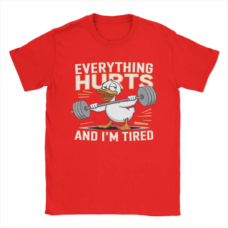 Men’s “Everything Hurts and I’m Tired” Duck Weightlifting T-Shirt: Short Sleeve Funny Gym Top