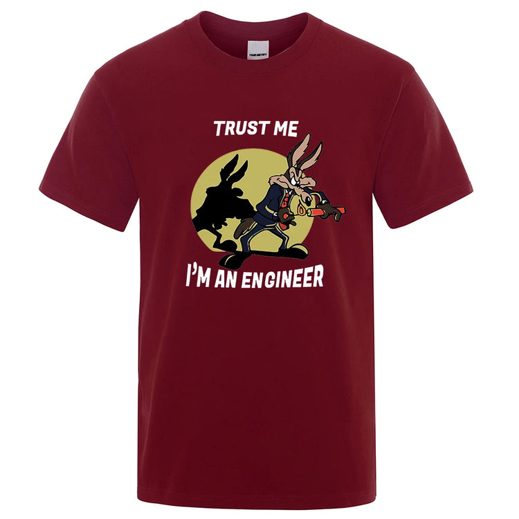 “Trust Me I’m an Engineer” Cartoon Graphic T-Shirt: Short Sleeve Fun Casual Top